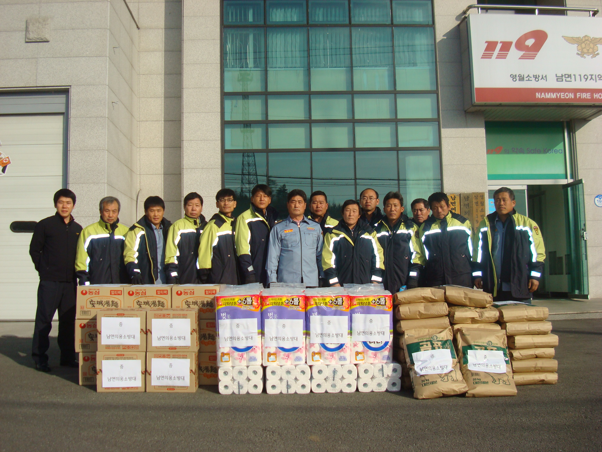 영월소방서 방호구조과 남면의용소방대 (대장 신승근 외 12명)는 남면소재의 18개리 22개소의 경로당에 위문품(밀가루, 라면, 화장지)을 전달하고 더불어 소방안전교육을 실시하였습니다. 매서운 동장군의 칼바람 속에서도 우리 의용소방대원님들의 마음만큼은 따끈한 호빵 속 단팥에서 피어오르는 연기처럼 훈훈합니다.
