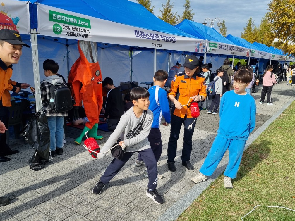 영월소방서(서장 김동훈)는 지난 21일 영월스포츠파크에서 열린 ‘영월진로박람회’에서 미래 소방관 직업체험 부스를 운영했다고 밝혔다.