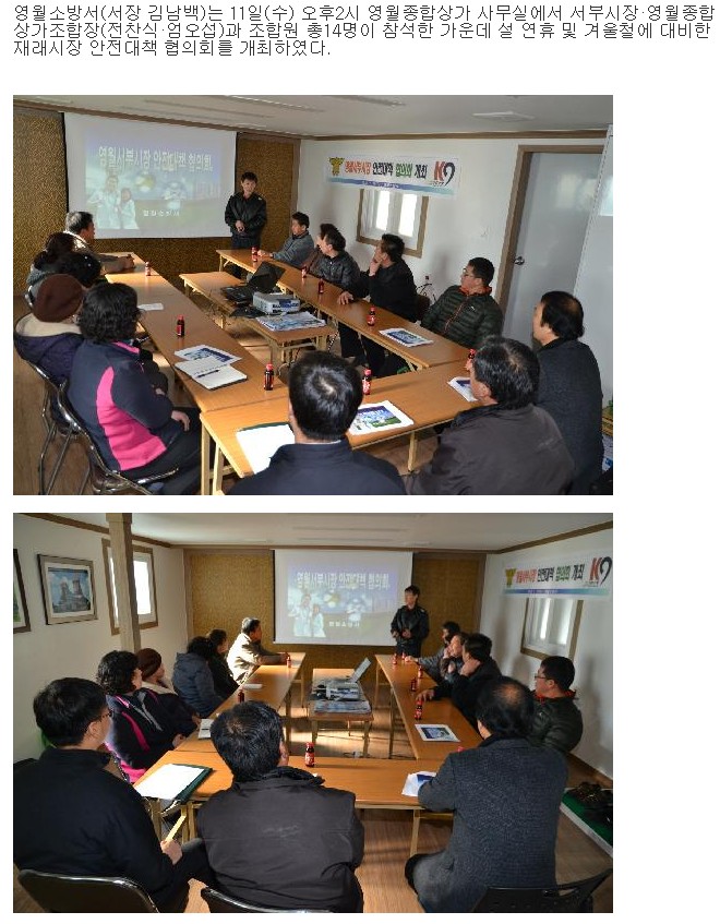 549 | 영월군 재래시장 안전대책 협의회 개최(1. 11) | 예방 | 2012-01-11 | 700 | |
