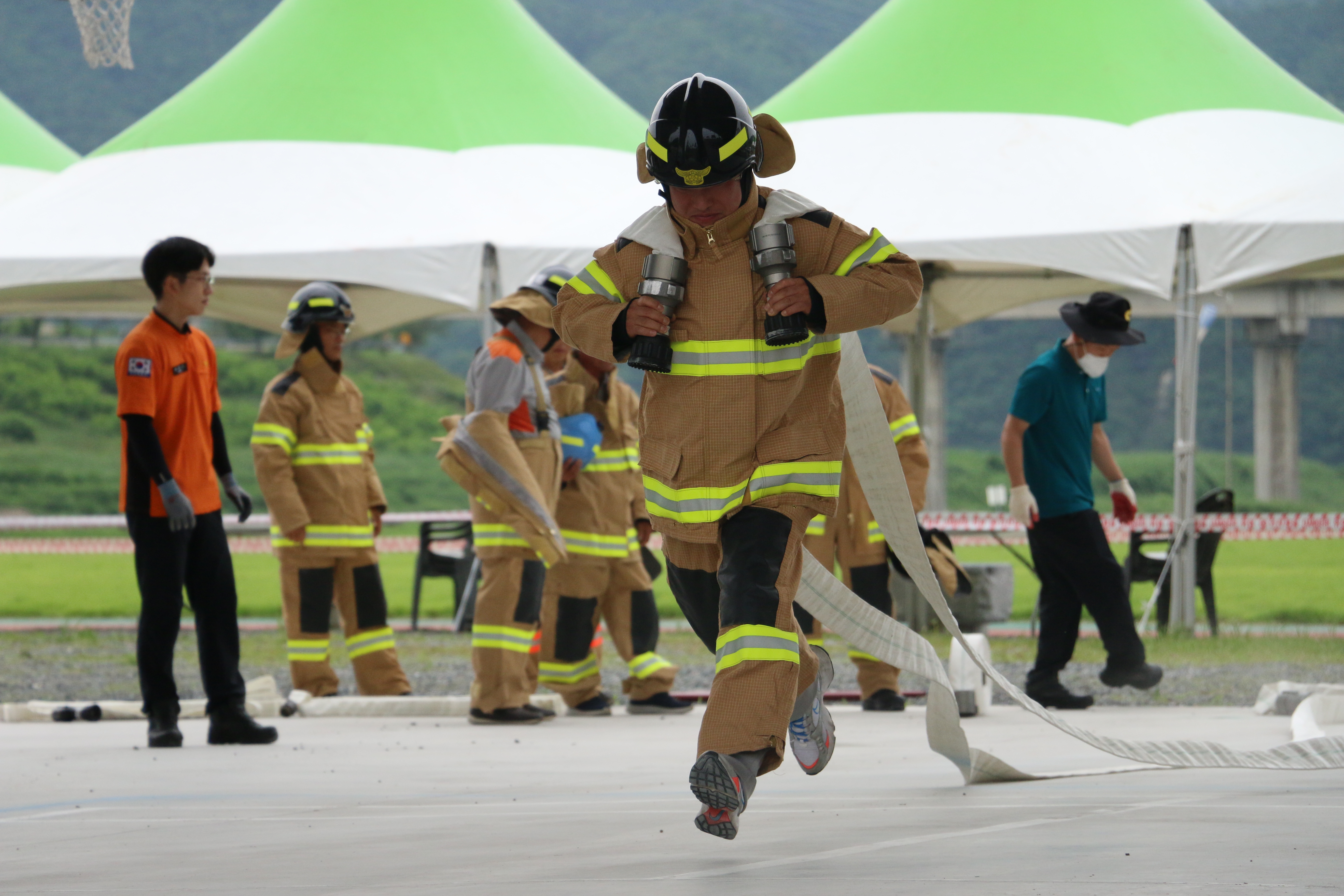 □ 영월군 관내 23개대 의용소방대원과 가족 등 500여 명이 참석한 가운데 소방호스 끌기, 수관연장ㆍ개인장비 장착ㆍ심폐소생술, 수관굴려 볼링공 맞추기, 색판 뒤집기 등 화합마당으로 마련했다.