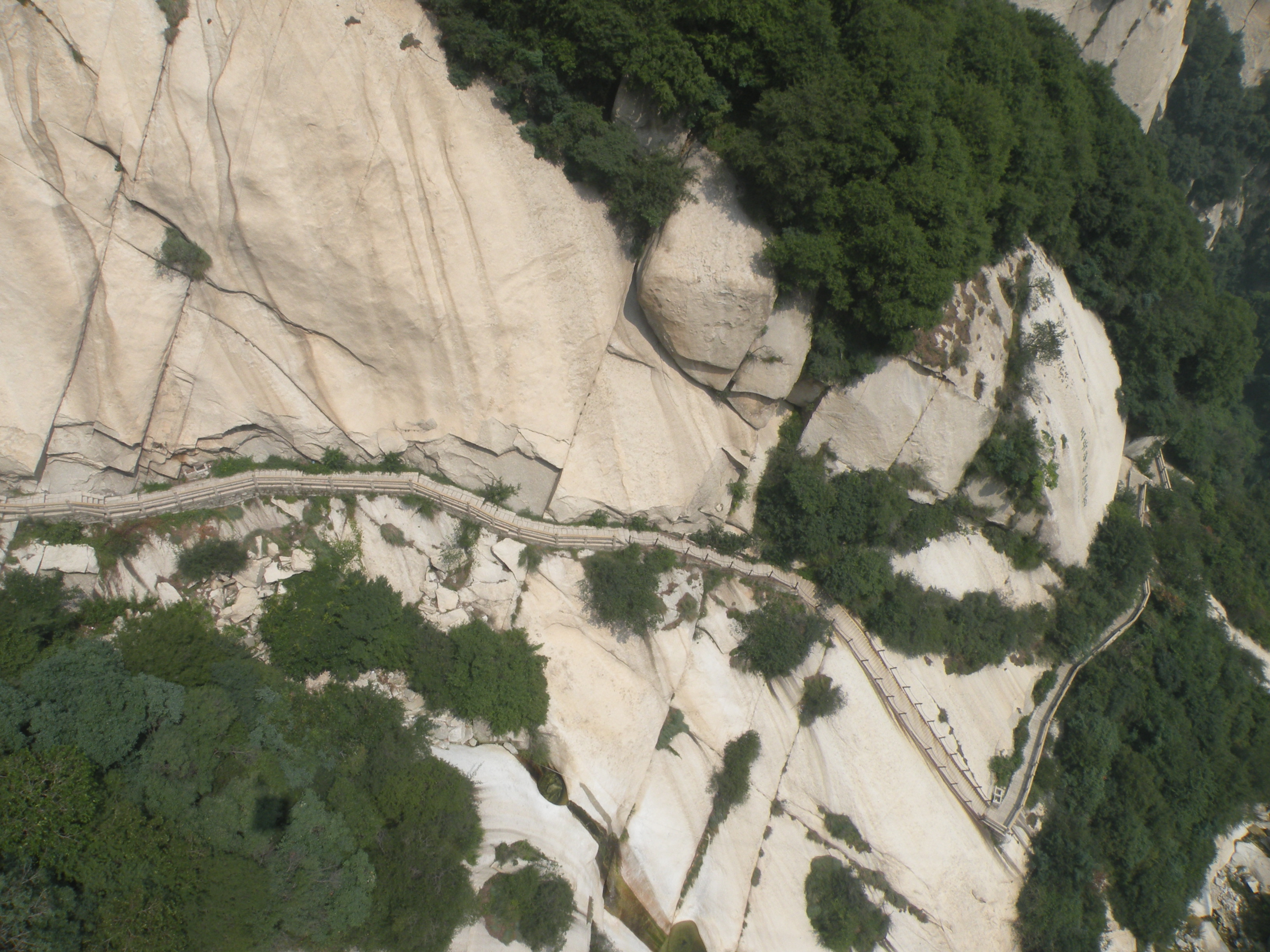 지난주 여름휴가차 중국을 다녀왔습니다. 워낙 땅떵어리가 커서그런지 대부분의 산도 장엄하고 거대한 명산이 많이 있지요. 그중 "서안"에 위치한 "화산(2,160m)"을 다녀왔다. 물론 다른 명소도 둘러보았지만, 산꾼인 내게 큰 관심은 역시 산행이었다.......암반으로 이루어진 "화산"정상까지 바위를 "정"으로 쪼아 만든 돌계단이 수천개가 있고,,,,정상까지 물과 음료수를 운반하는 짐꾼들의 모습에서,,,,,가히 감탄이 절로 나왔다...