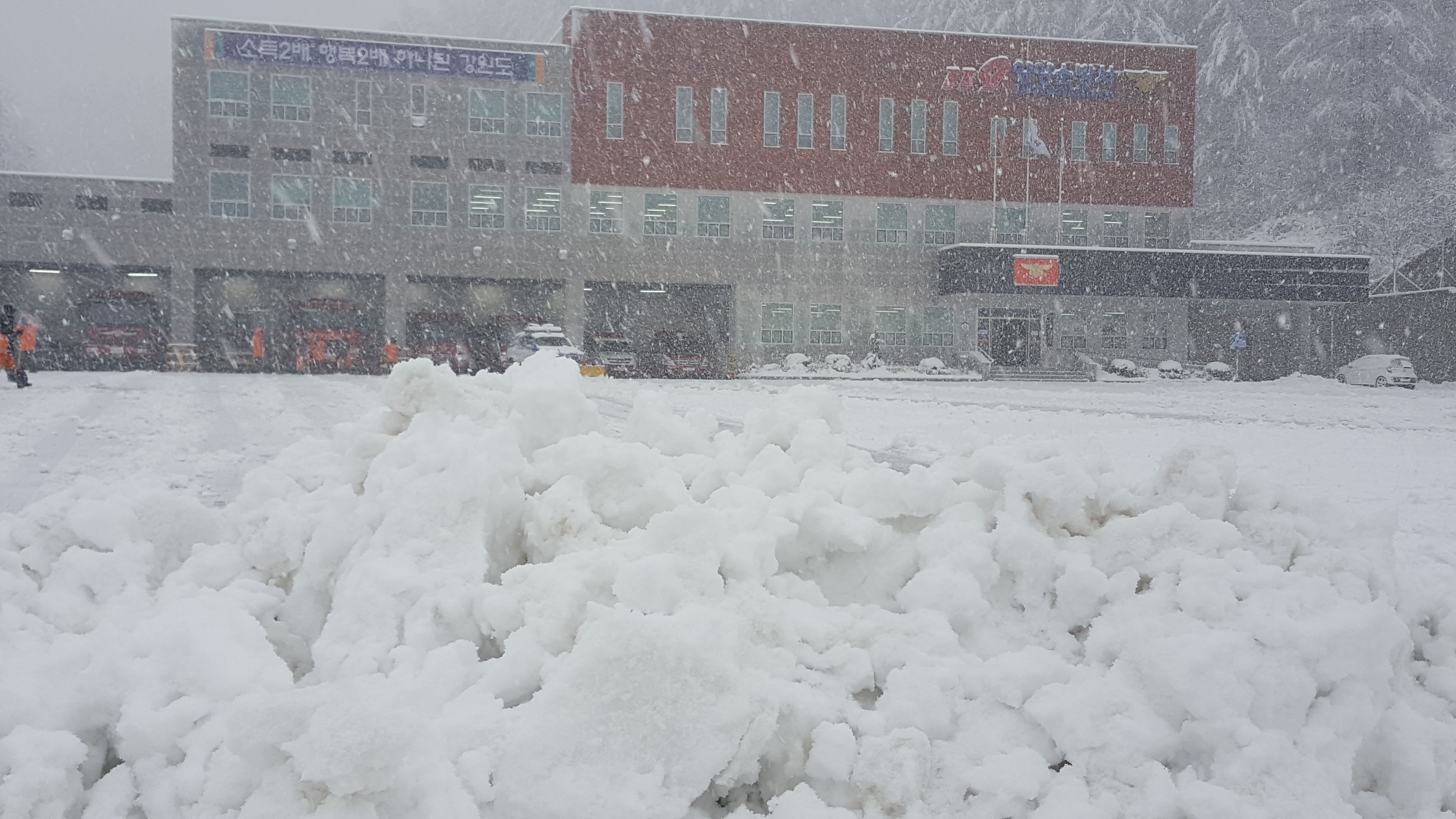 동해안 지역에 폭설로 인하여 교통사고와 기타 빙판길 사고가 급증하는 이때에 소방통로 확보가 되지 않아 출동에 지장을 줄 수 있어 제설작업을 통하여 신속한 출동에 불편함이 없게 했다.