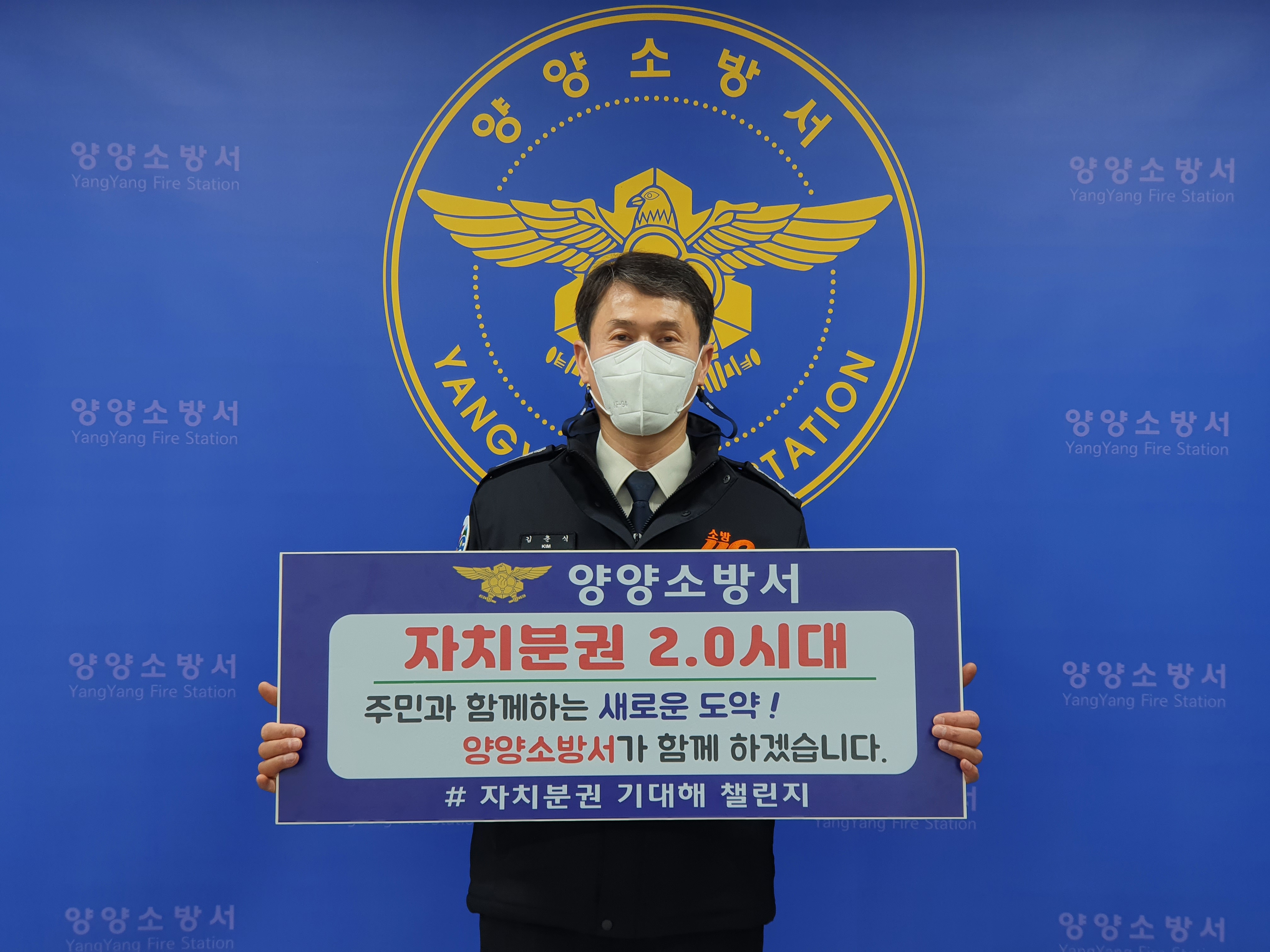 양양소방서(서장 김춘식)는 지방분권 2.0 시대 개막을 응원하는 ‘자치분권 기대해’ 챌린지에 동참하였습니다